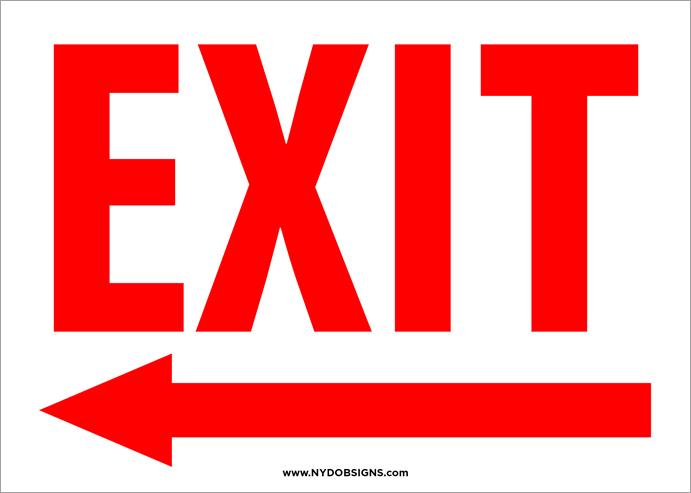 This Exit sign (left arrow) is used to clearly mark designated exit routes for safe evacuation from construction sites and buildings. It helps guide workers and occupants toward emergency exits in the event of an evacuation. Commonly installed along exit pathways, corridors, and stairwells to support OSHA and building safety requirements.